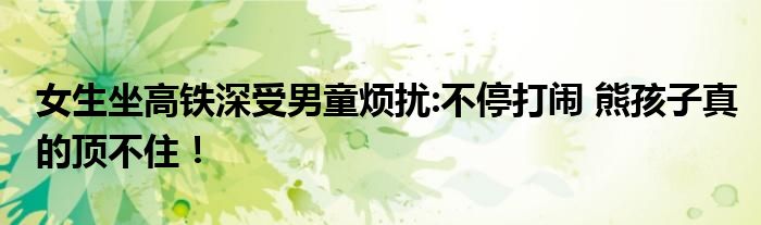 【女生坐高鐵深受男童煩擾:不停打鬧】女生坐高鐵深受熊孩子煩擾,全程爬上爬下瘋狂打鬧,家長(zhǎng)毫無(wú)作為!