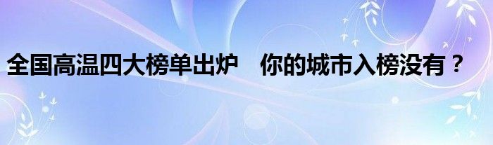 【全國高溫四大榜單出爐】根據權威數據整理的榜單,供大家了解,并提醒大家做好防暑降溫的措施。