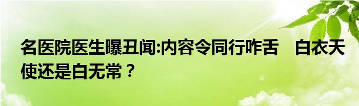 名醫院醫生曝丑聞:內容令同行咋舌