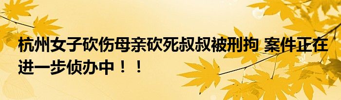 杭州女子砍傷母親砍死叔叔被刑拘