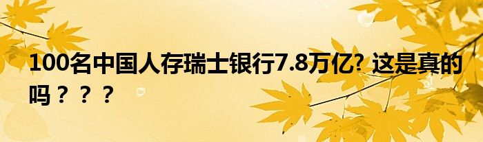 近日,網(wǎng)上熱傳《100名中國(guó)人存瑞士銀行7.8萬億?都是些什么人》,引發(fā)網(wǎng)民的關(guān)注。文章稱:瑞士銀行公布消息,100位中國(guó)人在瑞士銀行的存款合計(jì)7.8萬億,則平均存款為:78000億/100=780億人民幣。