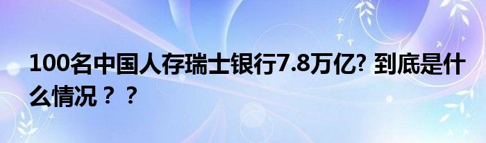 近日,網上熱傳《100名中國人存瑞士銀行7.8萬億?都是些什么人》,引發網民的關注。文章稱:瑞士銀行公布消息,100位中國人在瑞士銀行的存款合計7.8萬億,則平均存款為:78000億/100=780億人民幣。