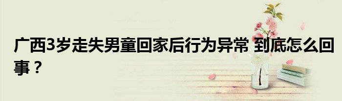 【廣西3歲走失男童回家后行為異?!拷?,廣西藤縣,廣西3歲男童失聯(lián)3天被尋回,媽媽稱孩子搖頭哭腔說“不要” 睡覺時用手捂臉,對玩具沒有反應,行為異常。