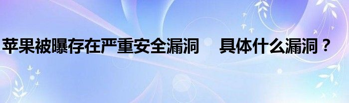 【蘋果被曝存在嚴重安全漏洞】蘋果系統以安全著稱,這次得漏洞會不會影響新品發布或者銷量下滑呢?