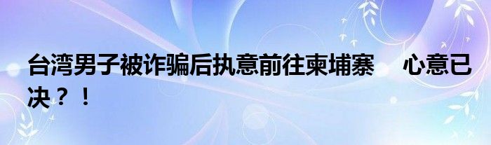 臺灣男子被詐騙后執意前往柬埔寨
