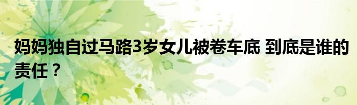 【媽媽獨自過馬路3歲女兒被卷車底】近日,重慶高新區,一位媽媽帶著兩個女兒準備過馬路,3歲小女兒被卷進車底引發熱議。