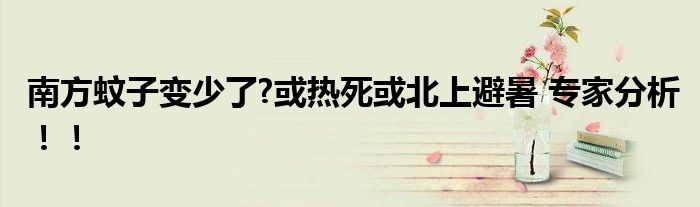 【南方蚊子變少了?或熱死或北上避暑】南方的朋友有發現今年,蚊子變少了許多嗎?究竟是什么原因呢專家分析如下。