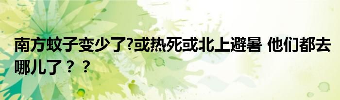 【南方蚊子變少了?或熱死或北上避暑】今年蚊子明顯感覺少了,是因為天氣熱的原因嗎?消失的蚊子去哪了,還會卷土重來嗎?專家:它們沒有少,只是“熱”的罷工了!