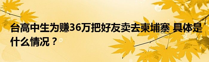 據(jù)報(bào)道稱,臺(tái)灣省一名高中生為了賺取36萬(wàn)元,竟然將自己的兩名發(fā)小騙去了柬埔寨。
