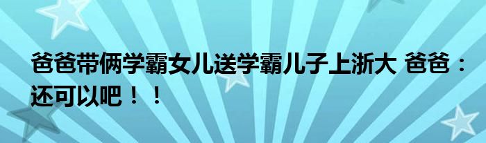 【爸爸帶倆學霸女兒送學霸兒子上浙大】近日,重慶爸爸攜兩位學霸女兒送兒子上浙大,全程咧嘴大笑稱:還可以吧,小孩爭氣,引發網友關注。