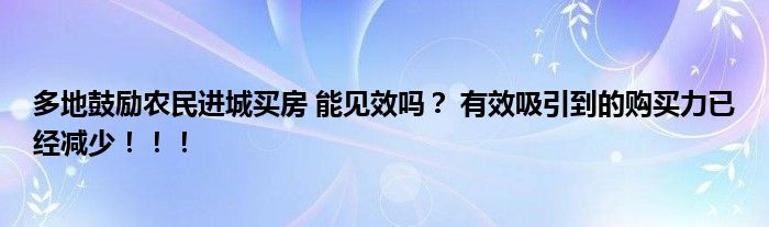 【多地鼓勵農民進城買房 能見效嗎?】近年來,縣城地產市場不振,市場有媒體報道,縣城的二手房掛牌無人問津的新聞,近期多地鼓勵農民進城買房,真的能見效嗎?