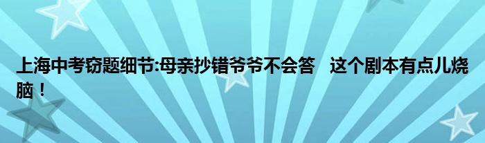 【上海中考竊題細節:母親抄錯爺爺不會答】古語講,若要人不知,除非己莫為!到了真相大白之時,后悔晚矣。