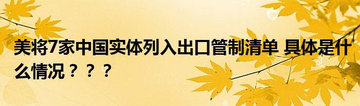 【美將7家中國(guó)實(shí)體列入出口管制清單】近期隨著國(guó)際沖突的日益緊張,中美的關(guān)系也愈發(fā)緊張起來,中美關(guān)系正在遭遇越來越多的挑戰(zhàn),發(fā)展方向面臨被進(jìn)一步引向歧途的危險(xiǎn)。有消息傳出,美將7家中國(guó)實(shí)體列入出口管制清單,這是怎么回事?