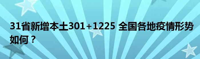 【#31省新增本土301+1225#】近期,全國疫情整體呈現穩定下降態勢,現有本土確診病例和無癥狀感染者連續27天下降。近一周以來,全國每天新增本土感染者已經降至1200例以下,但又有新的本土聚集性疫情發生,疫情防控形勢依然嚴峻復雜。最新消息稱,31省新增本土301+1225。