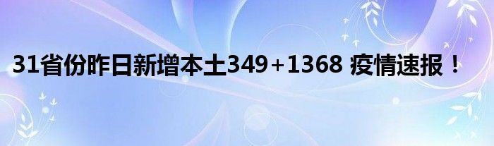 【31省份昨日新增本土349+1368】近年來(lái)全國(guó)飽受疫情影響,在全國(guó)人民的共同努力下,全國(guó)疫情終于得到有效控制,疫情形勢(shì)有所好轉(zhuǎn)。可沒(méi)等人們開(kāi)心幾天,近期,全國(guó)疫情又出現(xiàn)了不同程度的反彈。各地不斷傳來(lái)的新增確診病例的消息。