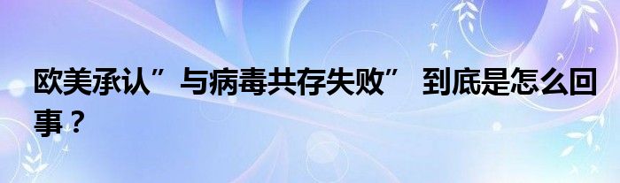 歐美承認"與病毒共存失敗"