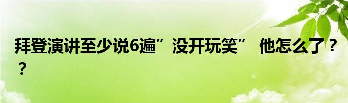 【拜登演講至少說6遍"沒開玩笑"】他怎么了?美媒:拜登30分鐘控槍演講至少說了6遍“沒開玩笑”,“我認真的”。