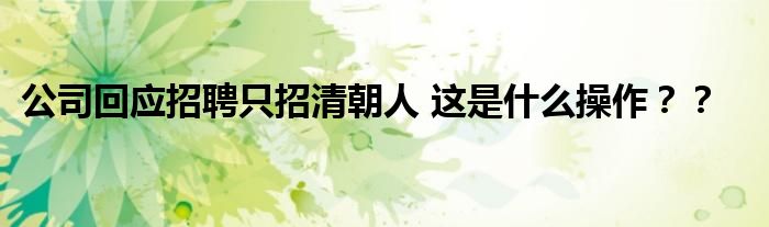 【公司回應招聘只招清朝人】驚呆了老鐵,這是什么操作?只招清朝人?