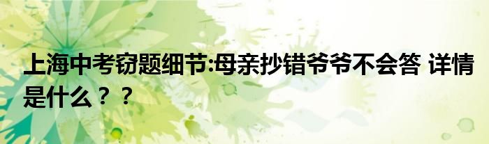 上海中考竊題細節:母親抄錯爺爺不會答