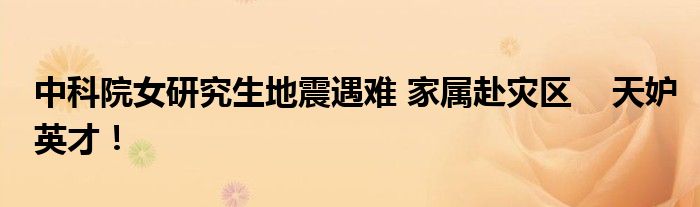 【中科院女研究生地震遇難 家屬赴災區(qū)】為遇難者感到惋惜,英年早逝,家人會是什么樣的心情!