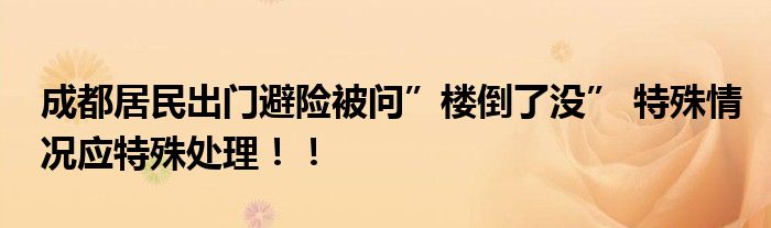 【成都居民出門避險被問"樓倒了沒"】近日,網上傳成都某小區居民想離開小區,但小區大門被鎖,并有工作人員拿著喇叭“我問你,大樓倒了沒有?”