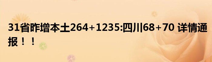 【#31省昨增本土264+1235:四川68+70#】當(dāng)前,國(guó)內(nèi)疫情防控形勢(shì)依然嚴(yán)峻復(fù)雜,昨日,全國(guó)疫情涉及24個(gè)省份、76個(gè)城市,點(diǎn)多面廣、局部多發(fā)。四川成都單日新增陽(yáng)性病例數(shù)依然在100例以上,社會(huì)面尚未清零。成都疫情防控正處在關(guān)鍵期,防控措施仍不能松懈。