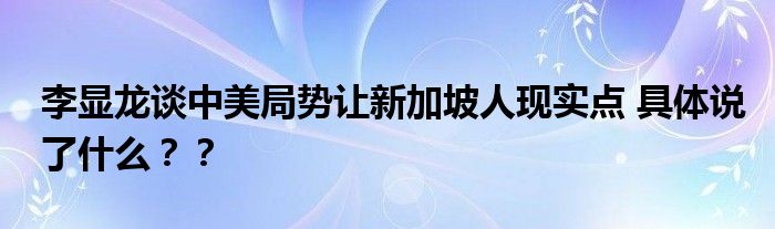 【李顯龍談中美局勢讓新加坡人現實點】一則消息沖上熱搜“李顯龍談中美局勢讓新加坡人現實點”,具體如下。