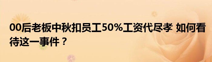 【#00后老板中秋扣員工50%工資代盡孝#】你怎么看“代盡孝”行為?最近海南三亞一家公司為體現(xiàn)中秋關(guān)懷,推出“代盡孝”福利,直接代扣員工50%工資作為中秋孝金打給員工父母。