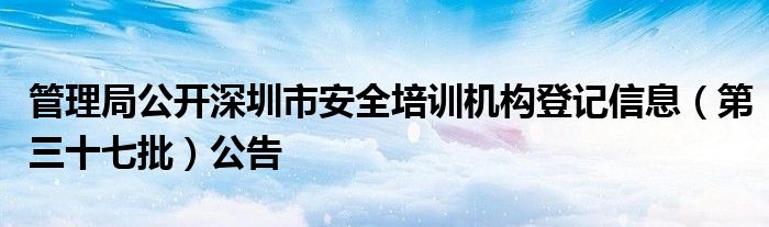附件:深圳市各區安全培訓機構登記信息匯總表(第三十七批)