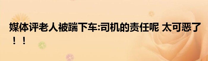 【媒體評老人被踹下車:司機的責任呢】太過分了!9月6日,湖南益陽市,一名老人帶著要售賣的兩大包泡泡桿乘車,因車票問題與司機產生言語爭執,隨后大媽被一名男乘客踹下車,物品也被扔出車外。媒體評老人被踹下車:司機的責任呢?