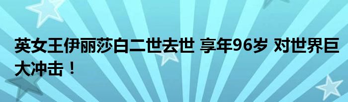 【#英女王伊麗莎白二世去世 享年96歲#】綜合英媒報道,當地時間9月8日,英國女王伊麗莎白二世在蘇格蘭巴爾莫勒爾城堡去世,享年96歲。系英國在位時間最長的君主,也是首位訪華的英國君主。她去世后,查爾斯將繼位成為英國國王。