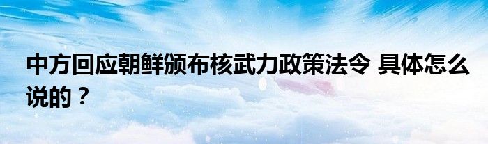 【中方回應朝鮮頒布核武力政策法令】今日焦點新聞,關于“中方回應朝鮮頒布核武力政策法令”的報道在網上引起高度關注。8日,朝鮮最高人民會議頒布關于核武力政策的法令。對此,中國外交部發言人毛寧回應,我們將繼續為推動半島問題政治解決發揮積極作用。具體情況是怎樣的?