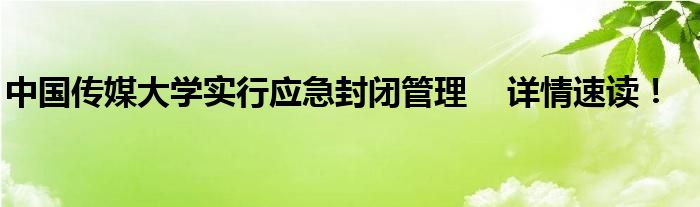 【中國傳媒大學實行應急封閉管理】防疫甚于防川!同學們堅持一下,不久就會恢復正常。