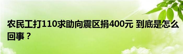 【農民工打110求助向震區捐400元】近日,在浙江衢州,村民胡先生向常山縣公安局打電話稱,他想向四川瀘定捐款。