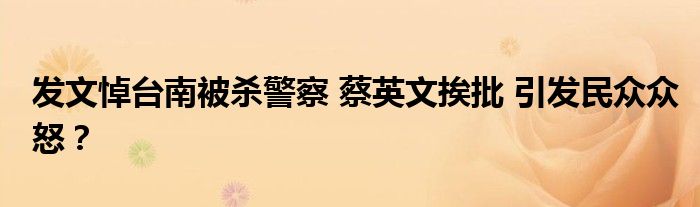 導讀 發文悼臺南被殺警察 蔡英文挨批【發文悼臺南被殺警察 蔡英文挨批】據臺灣媒體報道,臺南殺警案震驚全臺,臺灣地區領導人蔡英文23日晚間PO...