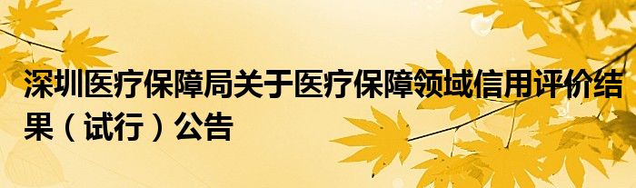 根據(jù)《深圳市醫(yī)療保障信用評價管理辦法(試行)》(深醫(yī)保規(guī)〔2021〕3號,以下簡稱《辦法》),我局對全市醫(yī)療保障領(lǐng)域信用主體(醫(yī)保定點醫(yī)藥機構(gòu)、醫(yī)保醫(yī)師、醫(yī)保藥師)進行了試行評價,現(xiàn)將試行評價結(jié)果公告如下: