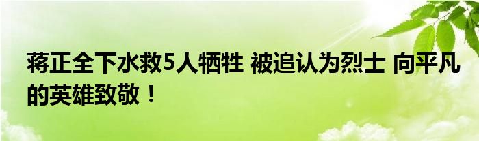 蔣正全下水救5人犧牲 被追認(rèn)為烈士