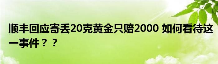 【#順豐回應寄丟20克黃金只賠2000#】9月13日,“順豐寄丟20克黃金保價八千只賠兩千”這一話題登上熱搜,引發熱議。男子同城快遞20克黃金丟了,保價八千順豐只肯賠兩千,簡直令人唏噓不已。