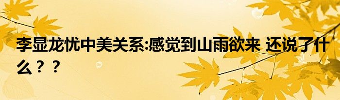 【李顯龍憂中美關系:感覺到山雨欲來】李顯龍最近的一些演講發言,非常真切的反映了新加坡作為一個小國的無奈。中美兩大國互相較勁,最終受到很大影響的不一定是中美,而可能是一些小國。