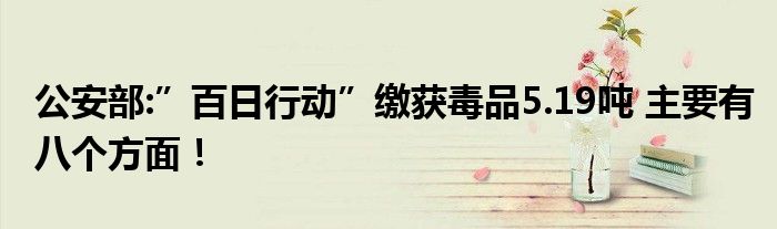 【公安部:"百日行動"繳獲毒品5.19噸】公安機關(guān)夏季治安打擊整治“百日行動”開展以來,全國共破獲毒品犯罪案件8657起,抓獲毒品犯罪嫌疑人12655名,繳獲各類毒品5.19噸,查處吸毒人員3.8萬人次,進一步鞏固拓展了我國毒品治理的良好態(tài)勢。主要體現(xiàn)在以下八個方面: