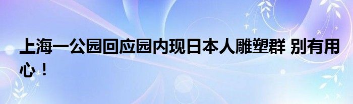 【上海一公園回應園內現日本人雕塑群】這種造謠生事的人非常可惡,利用人們的民族情緒作亂。