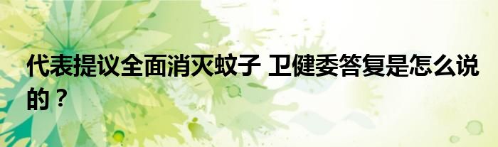 【代表提議全面消滅蚊子 衛(wèi)健委答復(fù)】近日,代表提議全面消滅蚊子衛(wèi)健委答復(fù),具體是怎么說的?