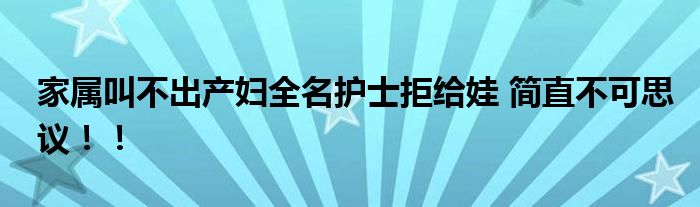 【家屬叫不出產婦全名護士拒給娃】一則關于家屬叫不出產婦全名護士拒給娃的新聞沖上熱搜,作為家屬不知道產婦的全名,這有點不可思議!