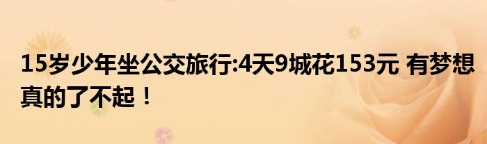 【15歲少年坐公交旅行:4天9城花153元】放暑假的時候,很多家長都會帶著孩子們到處旅行,但是也有很多家長要上班,他們自己也沒空,于是有些中學生便開啟了一個人的旅途。