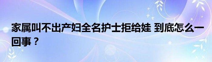 【家屬叫不出產婦全名護士拒給娃】近日,貴州畢節一護士抱著新生兒出產房,產婦家屬卻叫不出產婦全名,護士稱媽媽的名字都記不住,我怎么把寶寶給你!
