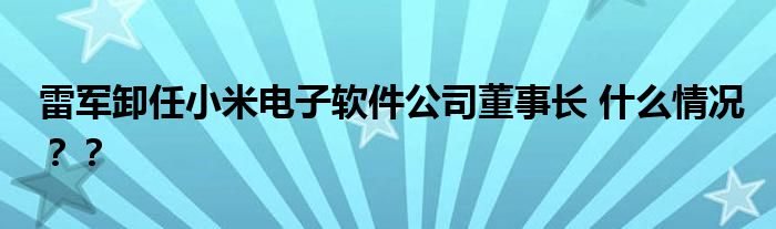 【雷軍卸任小米電子軟件公司董事長】一則關于雷軍卸任小米電子軟件公司董事長的新聞沖上熱搜,具體如下。