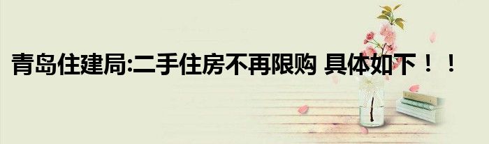 【青島住建局:二手住房不再限購】一則關(guān)于青島住建局:二手住房不再限購的新聞沖上熱搜,具體如下。