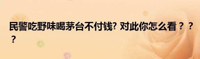 【民警吃野味喝茅臺不付錢?】在你的眼中,民警是什么樣的存在?是兢兢業(yè)業(yè)為人民服務,還是有困難想到的第一個人?但是近期有消息傳出民警吃野味喝茅臺不付錢的消息,這究竟是怎么回事?