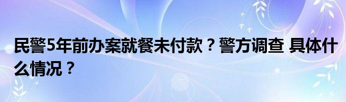 【民警5年前辦案就餐未付款?警方調查】9月14日,一份上海市寶山區法院發出的民事裁定書在網上流傳,網傳信息顯示,2017年,民警夏某在某餐廳吃野味喝茅臺未付餐費,被原告要求支付5688元。審理中,夏某表示原告所述不實,自己去餐廳系偵查行為。法院至長白新村派出所調查時,所里也表示被告夏某系該所民警,當日至原告處就餐系刑事偵查行為。最終,法院經審查認為,本案不屬于民事訴訟的受理范圍,遂裁定駁回原告葛某某的起訴。
