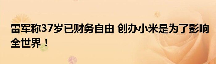 雷軍稱37歲已財(cái)務(wù)自由